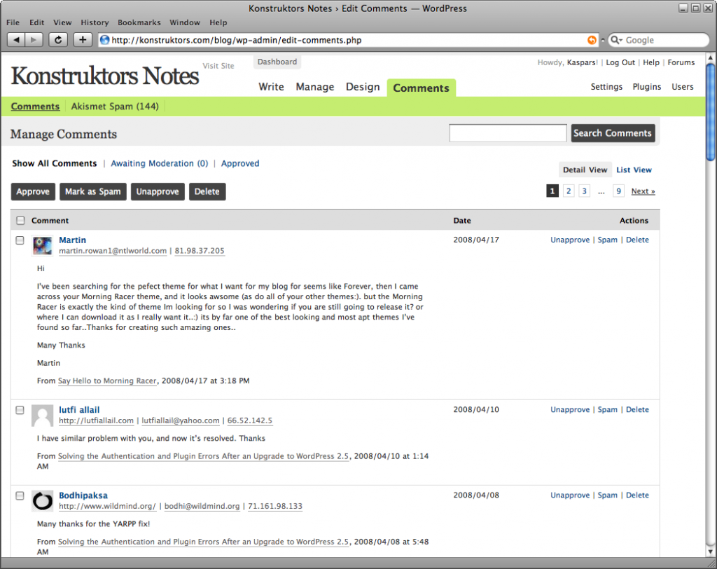 Spring Theme, Manage Comments