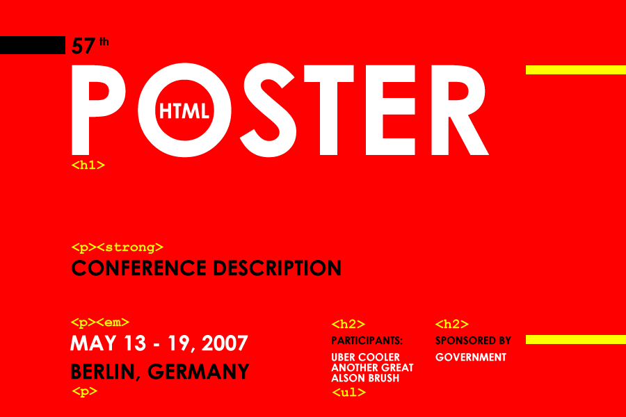 Illustration: HTML poster. Semantic graphic design.